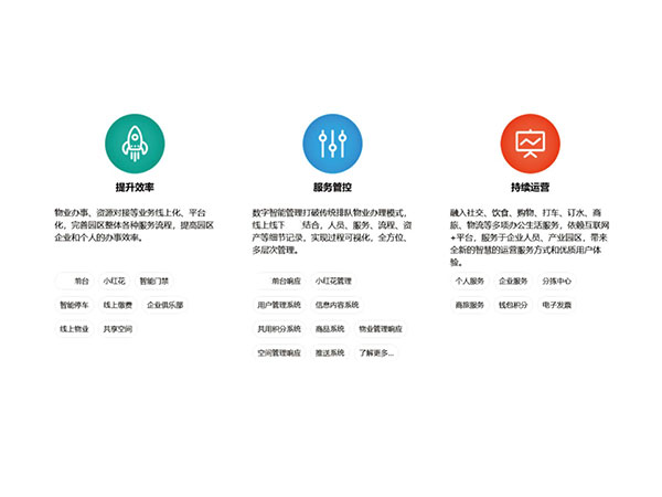 利用物聯網、云計算、大數據、人工智能等先進技術,幫助園區打造基礎設施集成、運營管理高效、公共服務便捷、可成長、可擴充、面向未來持續發展的智慧園區平臺,構筑園區建設、運營、服務多層次生態鏈共聚。項目需求調研服務:通過對園區的用戶群(包括運營管理方、園區企業、用戶、服務商、本地商家)的調研,提煉項目各方...