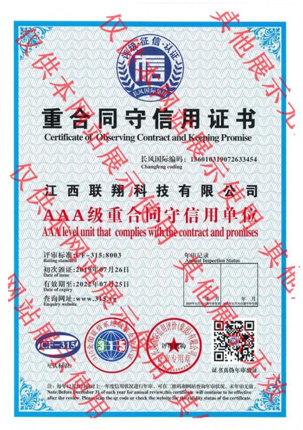 重合同守信用證書