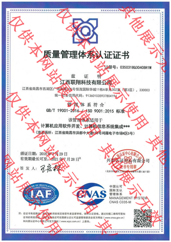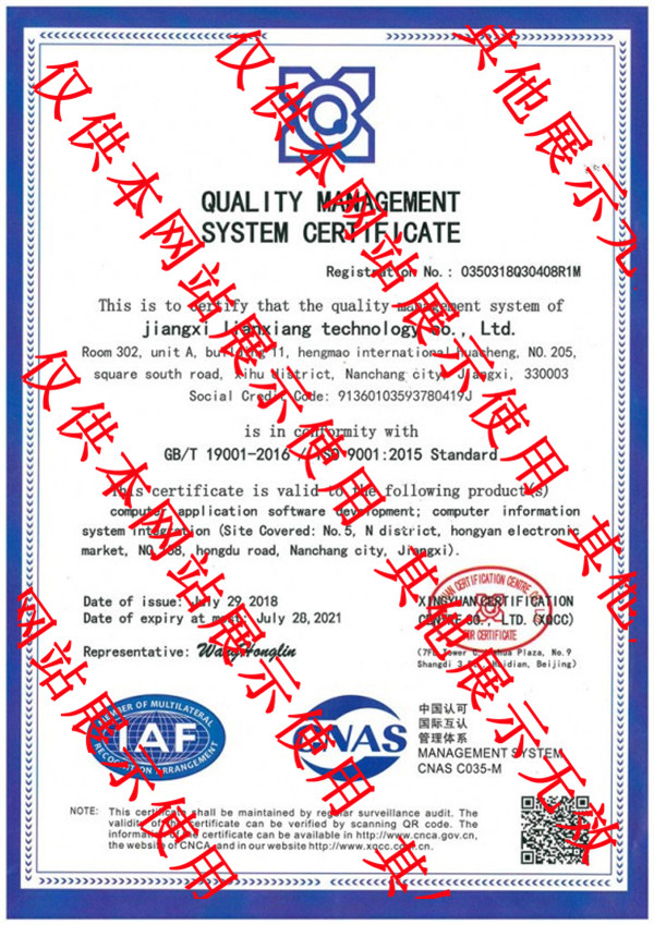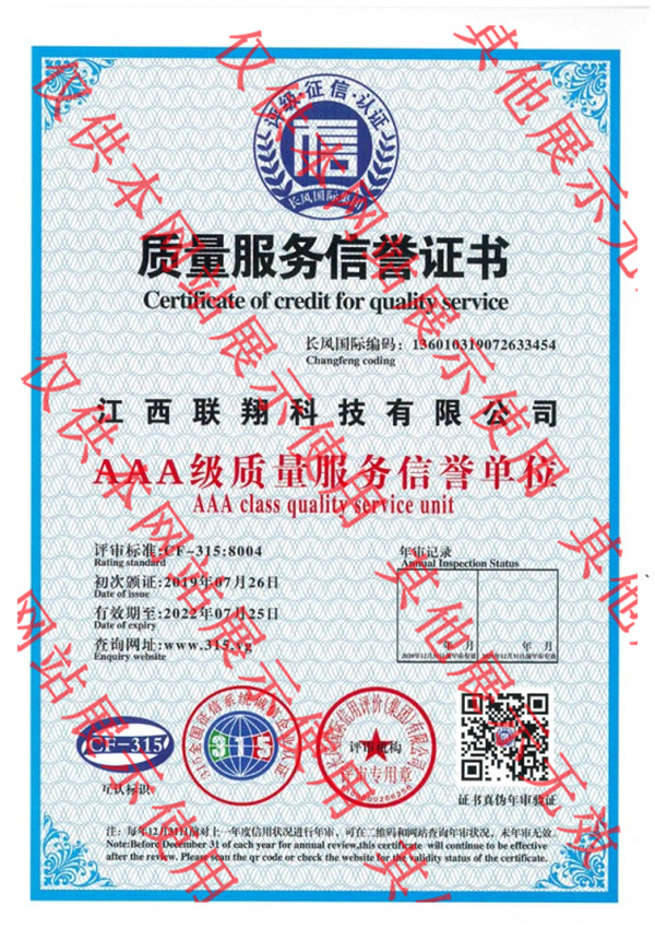質量服務信譽證書