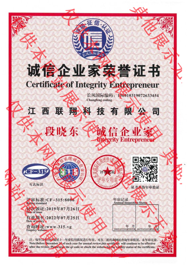 誠信企業家證書