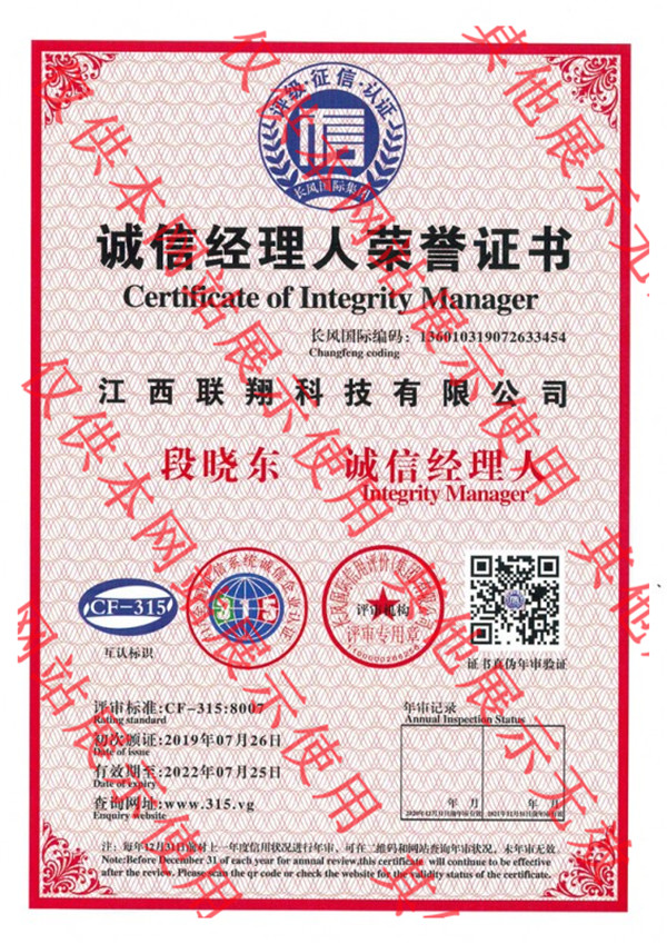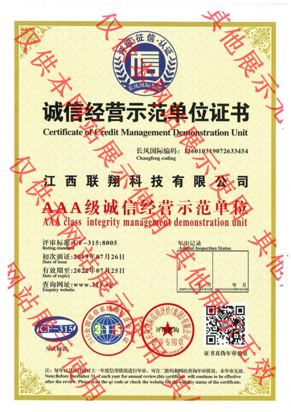 誠信經營示范單位證書